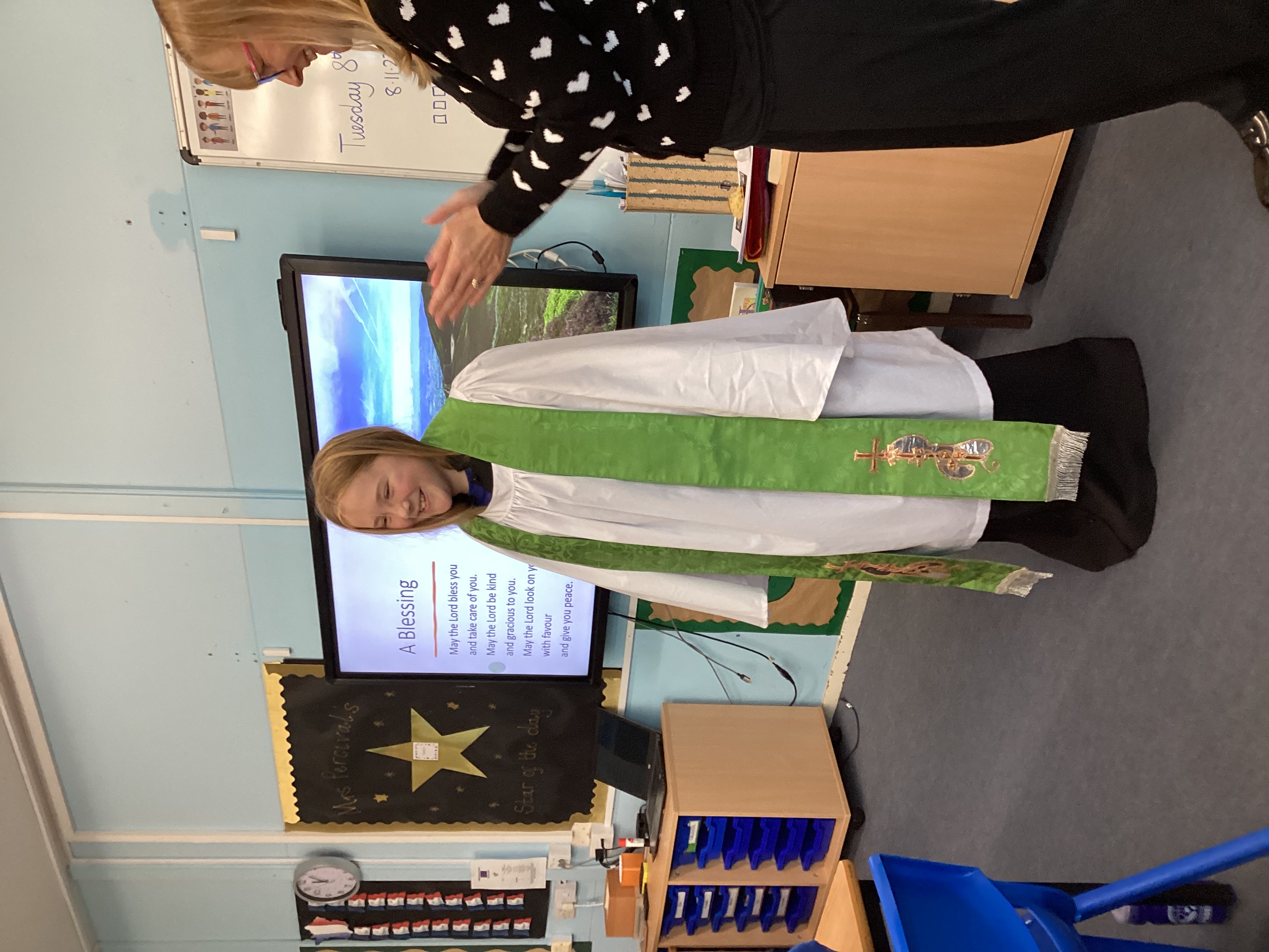 Today, Mrs Batchelor joined us for our RE lesson. She talked to us about Christian beliefs and talked to us about her job as a Deacon for the church.