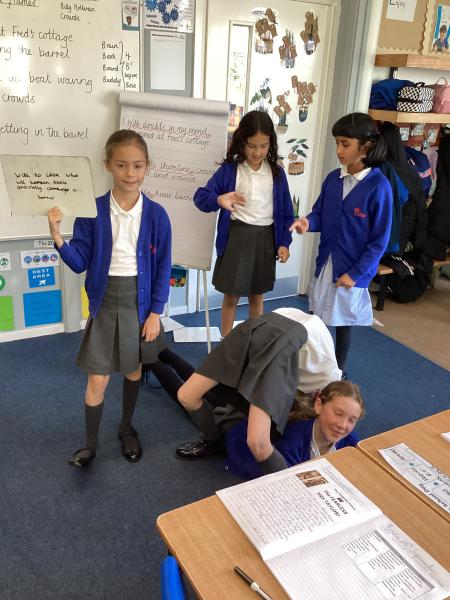Year 5 created freeze frames for Annie. This helped us with our writing in English. Fantastic work Year 5.