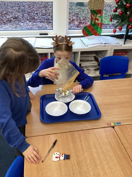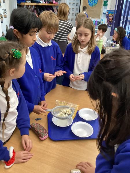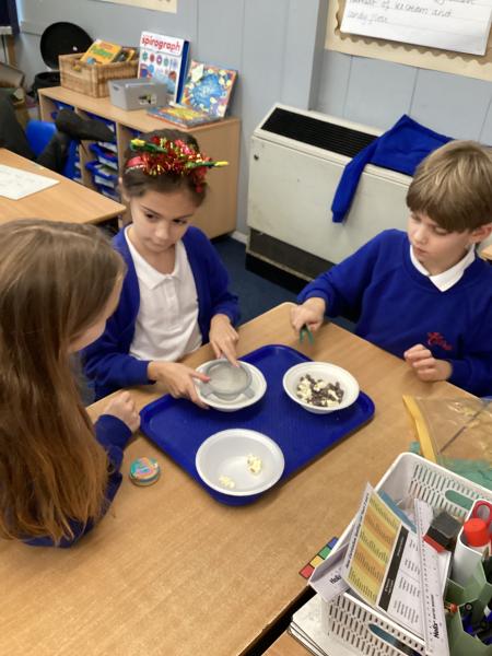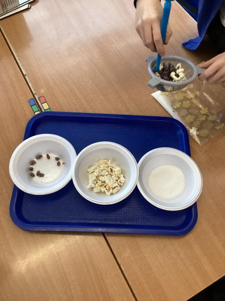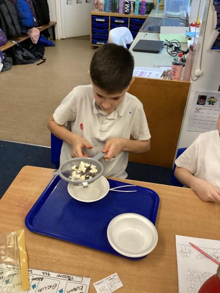Year 5 have been separating mixtures in Science. We used sieving to separate the snacks.
